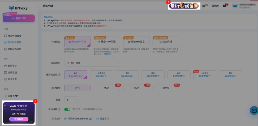 Step1 :登录 IPFoxy,选择您的代理套餐