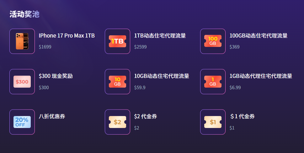 不用拼手速、不用复杂操作,购买代理即赠抽奖机会 —— 买得越多,抽得越多,中奖概率越高!
