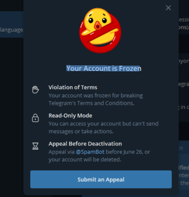 - If the notice indicates a “phone number ban,” try to contact Telegram official support, explain the situation, and attach the phone number, registration country, and device information.