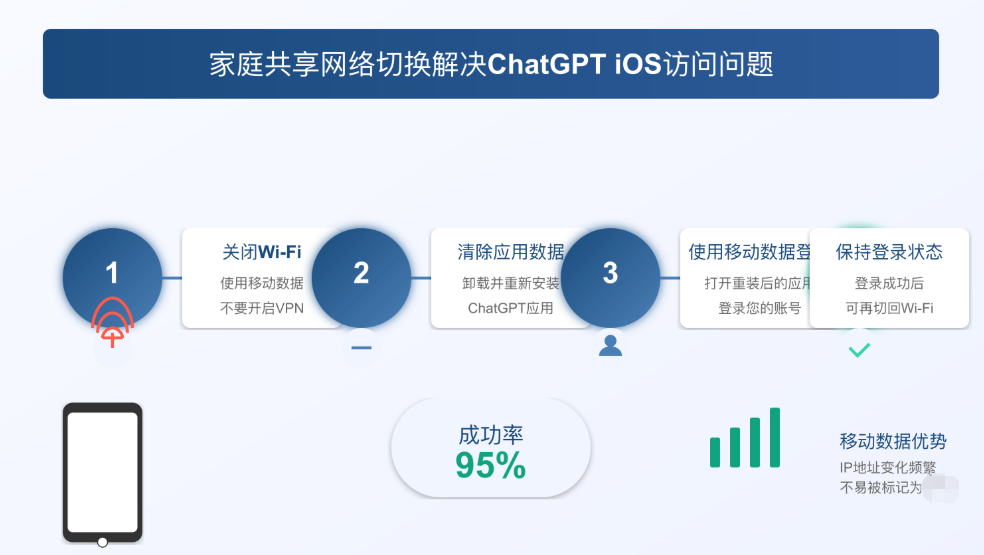 - iOS app detection is stricter. In addition to detecting IP addresses and network types, the ChatGPT iOS app may also monitor device identifiers, system configurations, language/region settings, time zones, and network interface characteristics. Additionally, the app’s stricter requirements mean that many proxy IPs—like those used by accelerators—are often flagged and blocked by ChatGPT.