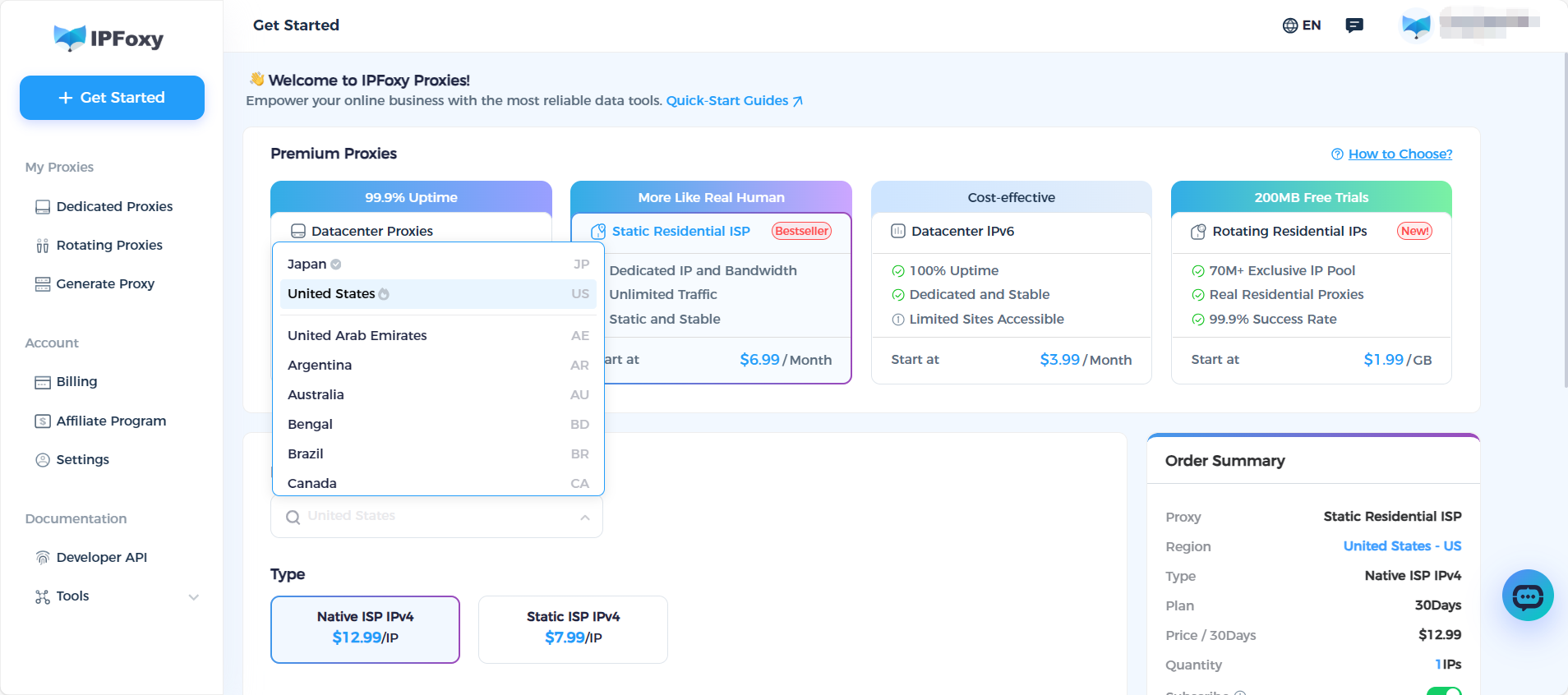 - Consider using dedicated static residential proxy services, such as IPFoxy.