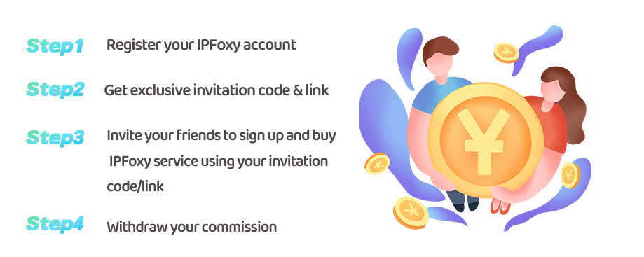Join the promotion program, invite your friends to use IPFoxy together and enjoy up to millions of cash earnings!