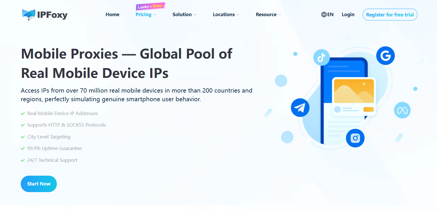 | IPFoxy | 1500万+移动IP | 200+ | 95-98% | $5.99/GB起 |