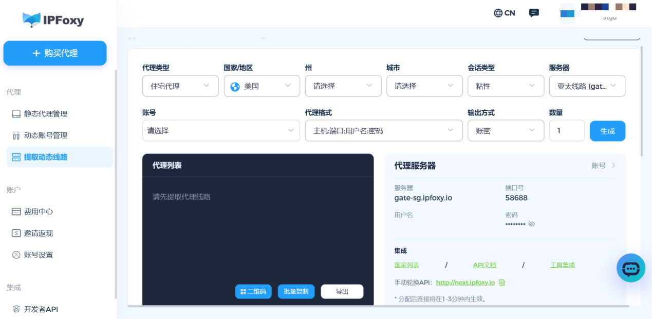 Airbnb 对访问频率和 IP 来源非常敏感,使用住宅代理可以显著降低被封风险。比较多人常用的是IPFoxy 的动态住宅代理,它可以高频自动轮转来规避反爬机制。IPFoxy能提供:
