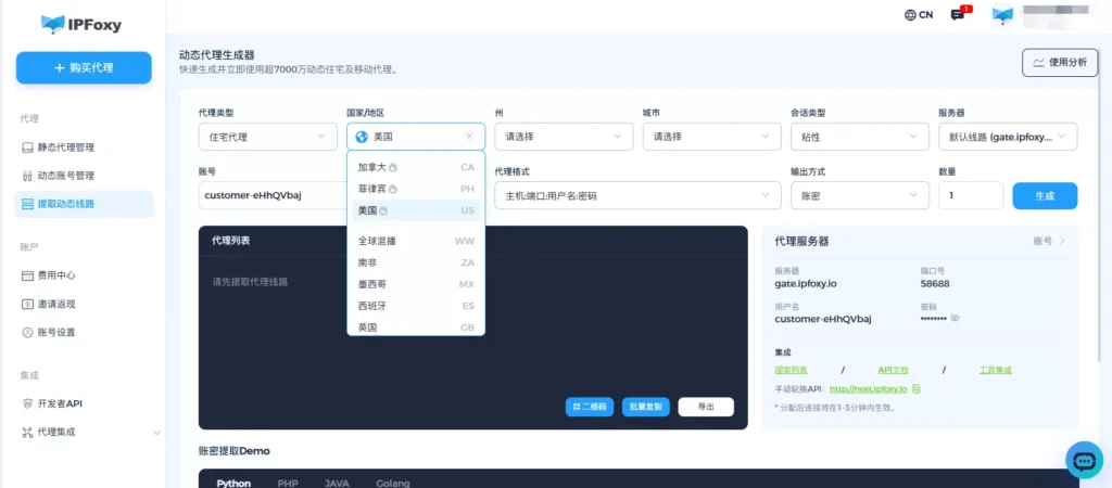 当数据采集从测试阶段进入长期运行,最大的风险不在代码,而在IP与环境稳定性。IPFoxy代理池均为非滥用真实住宅出口,200+多国家城市级节点可选,提供灵活API策略,这类场景下,更适合作为数据采集设计的住宅或移动代理网络。