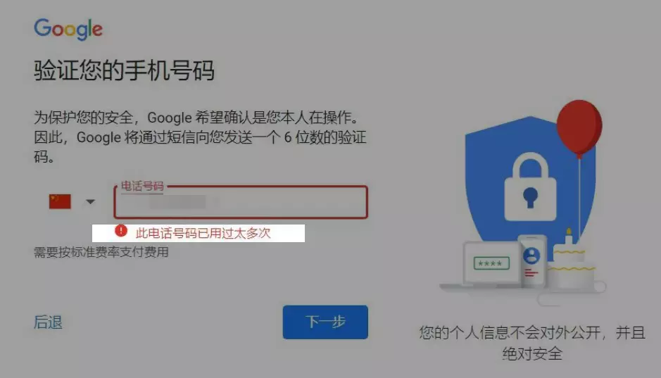 一、为什么谷歌会提示“此电话号码用于验证的次数过多”?