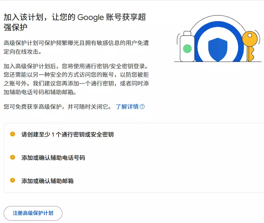 4、申请谷歌高级保护计划