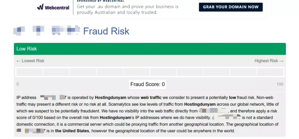 - 欺诈分数过高:在Scamalytics等检测平台上,风险评分超过75分。