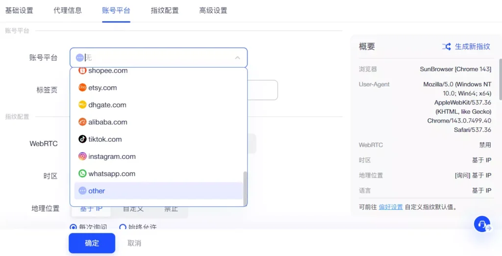 普通浏览器多开只能做到缓存与 Cookie 分离,但底层设备指纹往往高度相似。指纹浏览器则不同。它为每个账号创建独立 Profile,并可自定义: