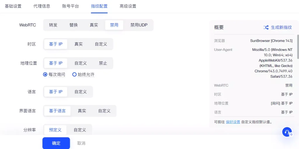 2. 设置对应国家的时区与语言、Cookie、Canvas / WebGL 指纹、User-Agent、操作系统版本等重要参数。