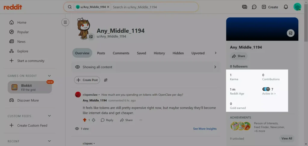 Karma主要分为两类:评论Karma(Comment Karma) 和 帖子Karma(Post Karma),分别对应不同的权重。在养号初期,建议优先获取评论Karma,更容易获得曝光。
