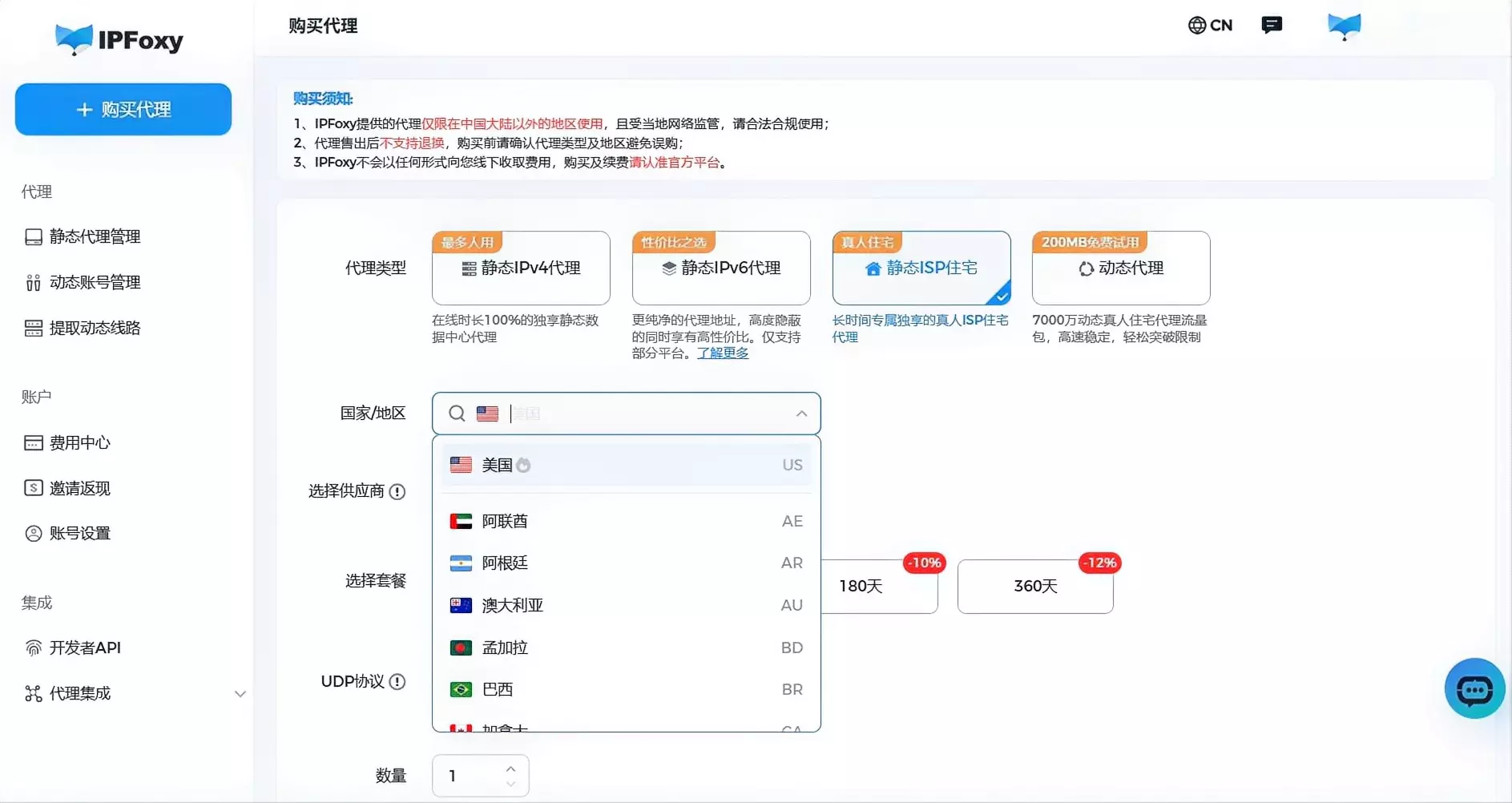 因此,广告投放、Facebook养号等情况在选择代理IP时,建议优先选择静态独享住宅IP,这样才更符合真实用户行为。例如许多矩阵账号团队选择从IPFoxy全球代理服务获取目标地区真实住宅IP代理,并且可以快速集成到指纹浏览器多开环境中,实现虚拟的一机一号一IP,从而在Facebook账号多开运营的场景下相抵封号风险,提高账号真实性与存活率。